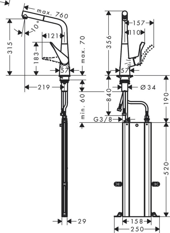 Тип излива | выдвижной, поворотный |