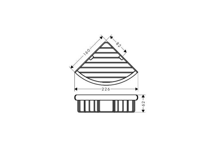 Полка, Hansgrohe, Logis Universal, решетка, ширина, мм-226, глубина, мм-160, высота, мм-62, форма-треугольная, тип установки-угловой, материал-латунь/металл, цвет-хром Полка, Hansgrohe, Logis Universal, шгв 226*160*62, цвет-хром