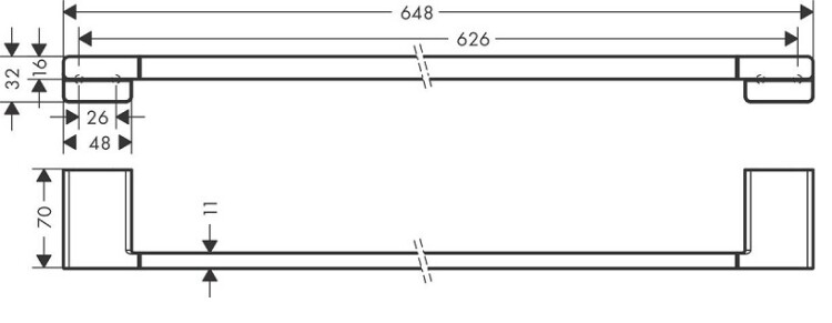 Полотенцедержатель, Hansgrohe, AddStoris, одинарный, ширина, мм-648, глубина, мм-70, высота, мм-32, тип установки-настенный, материал-металл, крепления в комплекте, цвет-хром Полотенцедержатель, Hansgrohe, AddStoris, шгв 648*70*32, цвет-хром