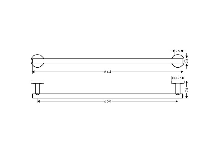 Полотенцедержатель, Hansgrohe, Logis Universal, одинарный, ширина, мм-600, глубина, мм-74, высота, мм-55, тип установки-настенный, материал-латунь/металл, цвет-хром Полотенцедержатель, Hansgrohe, Logis Universal, шгв 600*74*55, цвет-хром