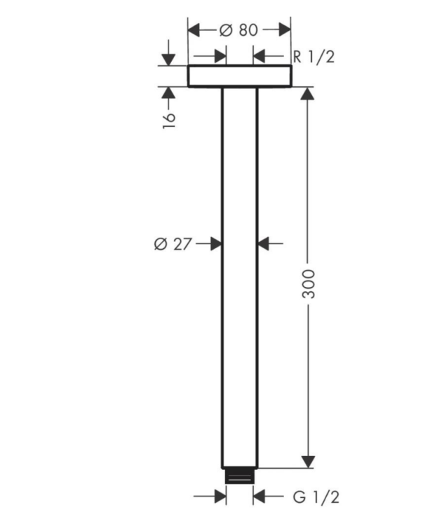 Держатель верхнего душа, Hansgrohe, вид-потолочный, вынос, мм-300, цвет-хром черный шлифованный Держатель верхнего душа, Hansgrohe, цвет-хром черный шлифованный