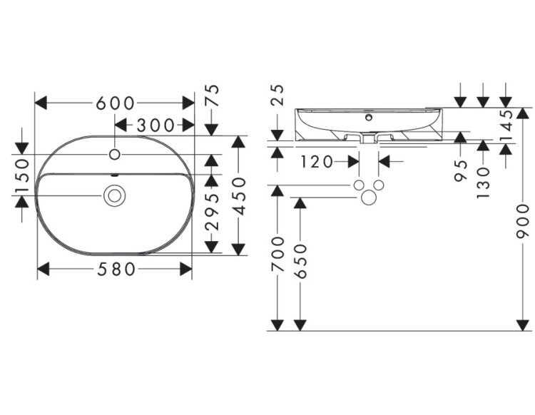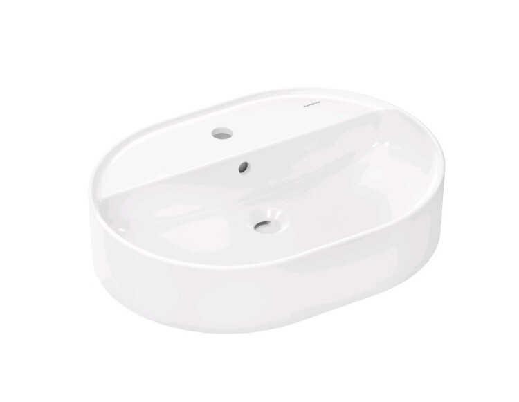 Раковина, Hansgrohe, Xuniva U, ширина, мм-600, глубина, мм-450, высота, мм-145, тип установки-накладной (настольный), отверстия для смесителя-1, с переливом, материал-керамика, крепления в комплекте, цвет-белый Раковина, Hansgrohe, Xuniva U, шгв 600*450*145, отверстия для смесителя-1, цвет-белый
