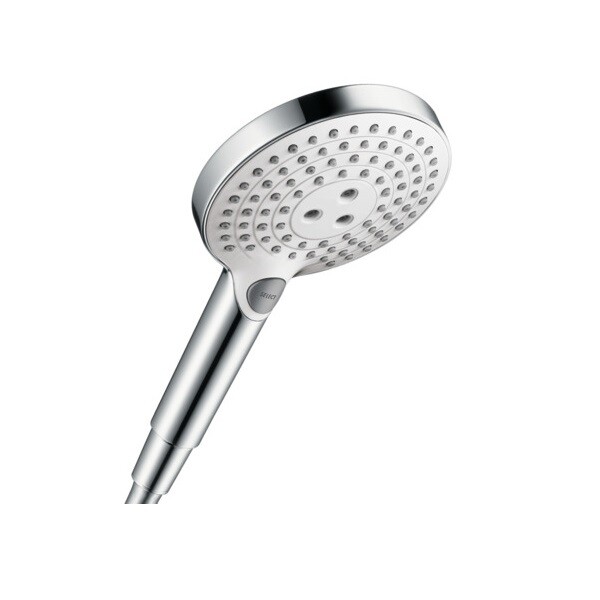 Ручной душ, Hansgrohe, Raindance Select S, EcoSmart, размер душевого диска, мм-125, форма-круглая, количество режимов-3, тип струи-Rain, RainAir, Whirl, цвет-белый/хром, удобное переключение типов струи с помощью кнопки Select Ручной душ, Hansgrohe, Raindance Select S, EcoSmart, 125, цвет-белый/хром