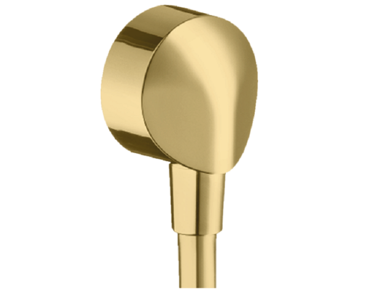 Шланговое подсоединение, Hansgrohe, Fixfit, стандарт подвода воды-1/2", без клапана обратного тока E, внутренняя часть из металла, цвет-полированное золото Шланговое подсоединение, Hansgrohe, Fixfit, без клапана обратного тока E, цвет-полированное золото