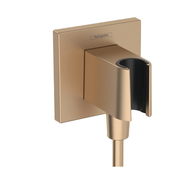 Шланговое подсоединение, Hansgrohe, Fixfit E, держатель-есть, со встроенным обратным клапаном, с подключением для душевого шланга, декоративная накладка, резьбовое соединение, стандарт подвода воды-1/2", цвет-шлифованная бронза Шланговое подсоединение, Hansgrohe, Fixfit E, цвет-шлифованная бронза