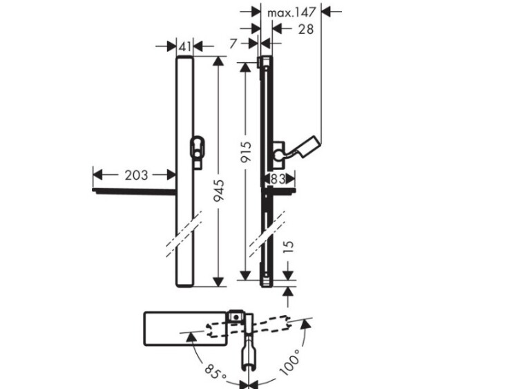 Штанга для душа, Hansgrohe, Unica'E, длина штанги, мм-900, держатель ручного душа-есть, шланг-есть, длина шланга, мм-1600, мыльница-есть, цвет-хром, держатель ручного душа регулируется в пределах 90°, поворачивается вправо и влево, перемещается вверх и вниз, самоблокирующийся, регулировка-плавная, материал полки-безопасное стекло, ширина штанги,мм-41, монтаж-настенный Штанга для душа, Hansgrohe, Unica'E, 900, цвет-хром