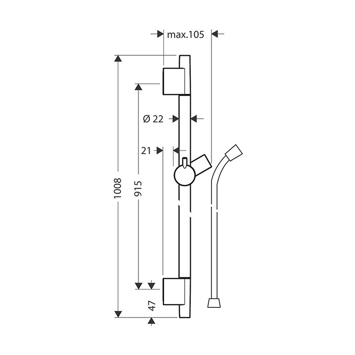 Штанга для душа, Hansgrohe, Unica, длина штанги, мм-900, держатель ручного душа-есть, шланг-есть, длина шланга, мм-1600, цвет-белый матовый, ширина штанги,мм-22, держатель с функцией фиксации, держатель с плавной регулировкой, регулировка угла наклона Штанга для душа, Hansgrohe, Unica, 900, цвет-белый матовый