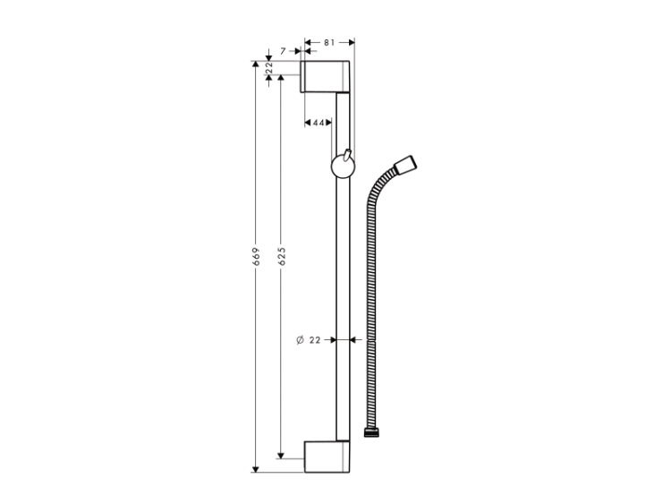 Штанга для душа, Hansgrohe, Unica, Crometta, длина штанги, мм-650, держатель ручного душа-есть, шланг-есть, длина шланга, мм-1600, цвет-хром Штанга для душа, Hansgrohe, Unica, Crometta, 650, цвет-хром