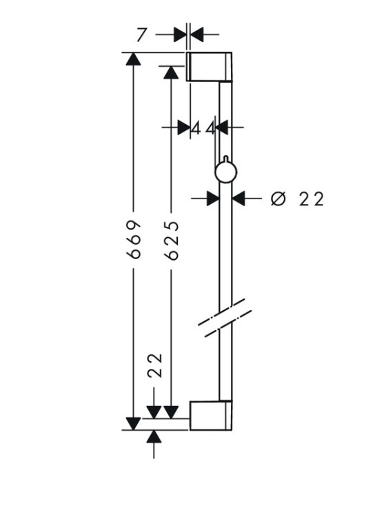 Штанга для душа, Hansgrohe, Unica, длина штанги, мм-650, цвет-хром Штанга для душа, Hansgrohe, Unica, цвет-хром