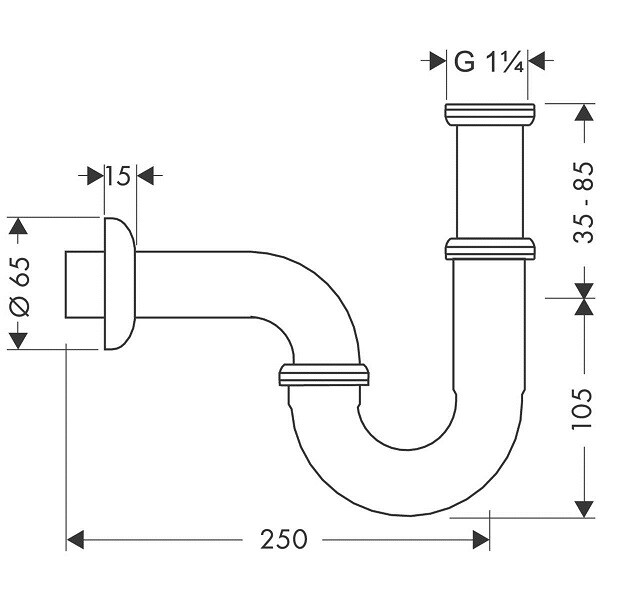 Сифон трубчатый, Hansgrohe, G 1 1/4", диапазон регулировки 35–85 мм, расстояние от стены 250 мм, цвет хром Сифон трубчатый, хром