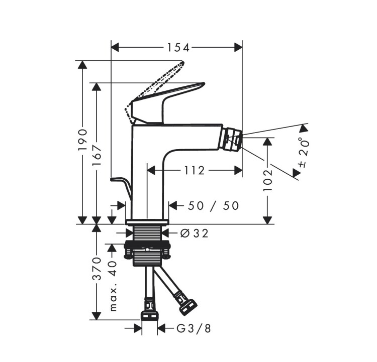 Смеситель для биде, Hansgrohe, Logis, тип открывания воды-однорычажный, тип регулирования воды-керамический картридж, отверстия для монтажа-1, высота, мм-167, вынос излива, мм-112, донный клапан-есть, тип подводки-гибкая, стандарт подвода воды-3/8", аэратор с шарнирным соединением, регулируемое ограничение температуры, подходит для проточных водонагревателей, материал сливного набора-синтетический, цвет-хром Смеситель для биде, Hansgrohe, Logis, цвет-хром