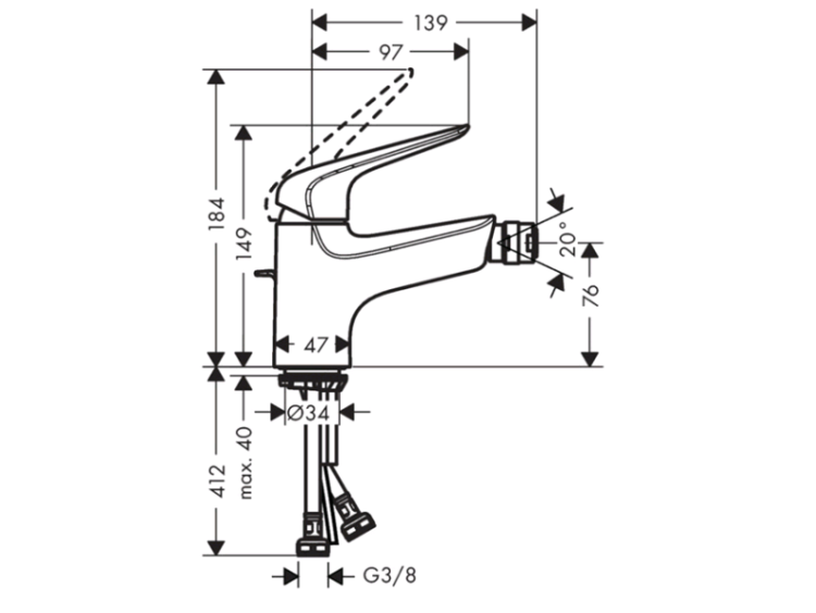 Смеситель для биде, Hansgrohe, Novus Loop, тип открывания воды-однорычажный, отверстия для монтажа-1, цвет-хром Смеситель для биде, Hansgrohe, Novus Loop, цвет-хром