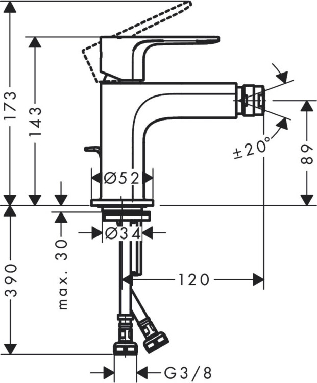 Смеситель для биде, Hansgrohe, Rebris S, тип открывания воды-однорычажный, тип регулирования воды-керамический картридж, отверстия для монтажа-1, высота, мм-143, вынос излива, мм-120, донный клапан-есть, материал сливного набора-металл, тип подводки-гибкая, стандарт подвода воды-3/8", цвет-черный матовый Смеситель для биде, Hansgrohe, Rebris S, цвет-черный матовый