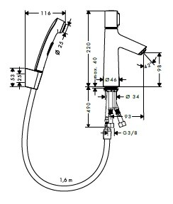 Смеситель для биде, Hansgrohe, Talis Select S, тип открывания воды-однорычажный, тип регулирования воды-керамический узел смешивания, высота, мм-220, вынос излива, мм-93, цвет-хром, регулируемое ограничение температуры Смеситель для биде, Hansgrohe, Talis Select S, цвет-хром