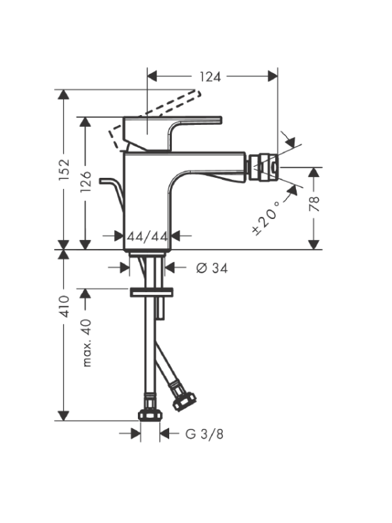 Смеситель для биде, Hansgrohe, Vernis Shape, тип открывания воды-рычажный, тип регулирования воды-керамический картридж, отверстия для монтажа-1, высота, мм-126, вынос излива, мм-124, материал ручки-металл, цвет ручки-в цвет смесителя, донный клапан-есть, тип подводки-гибкая, стандарт подвода воды-3/8", цвет-черный матовый Смеситель для биде, Hansgrohe, Vernis Shape, цвет-черный матовый