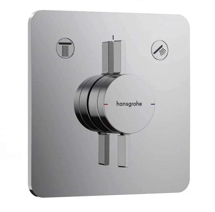 Смеситель для душа, Hansgrohe, DuoTurn Q, на 2 потребителя, тип открывания воды-однорычажный, тип регулирования воды-керамический картридж, монтаж-настенный встраиваемый, отверстия для монтажа-1, внутренняя часть-необходимо заказать, цвет-хром Смеситель для душа, Hansgrohe, DuoTurn Q, на 2 потребителя, цвет-хром