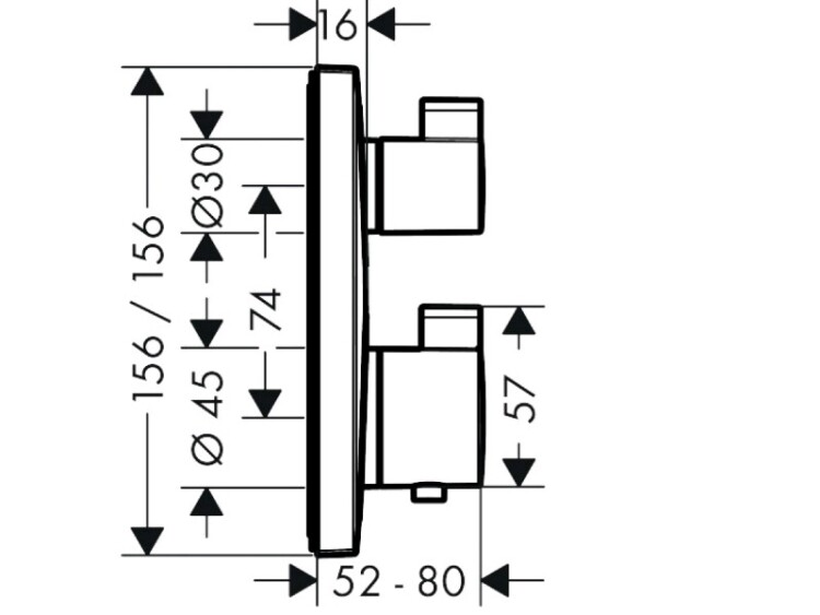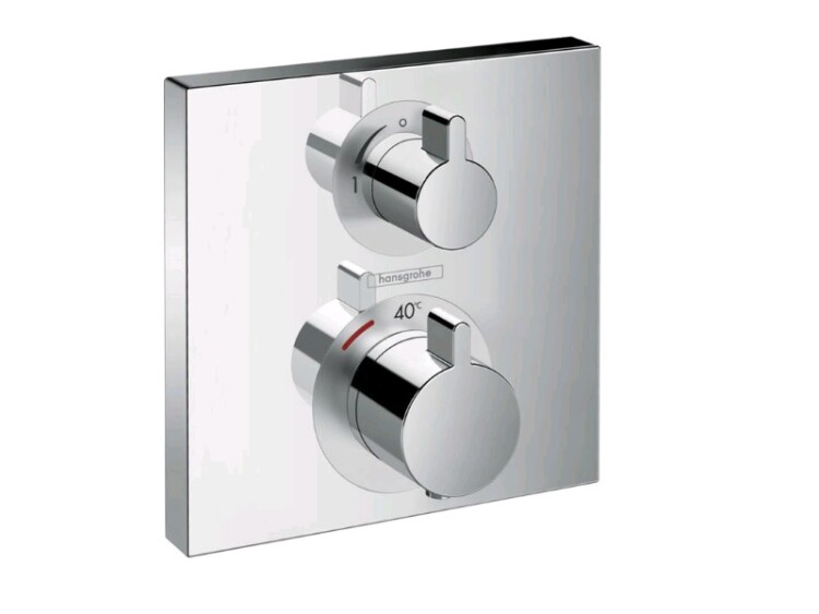 Смеситель для душа, Hansgrohe, Ecostat Square, тип открывания воды-двухвентильный, тип регулирования воды-термостатический картридж, тип установки-встраиваемый, внутренняя часть-необходимо заказать, цвет-хром, 2 потребителя, запорный и переключающий вентиль, предохранительный ограничитель при 40°C, регулируемое ограничение температуры Смеситель для душа, Hansgrohe, Ecostat Square, цвет-хром