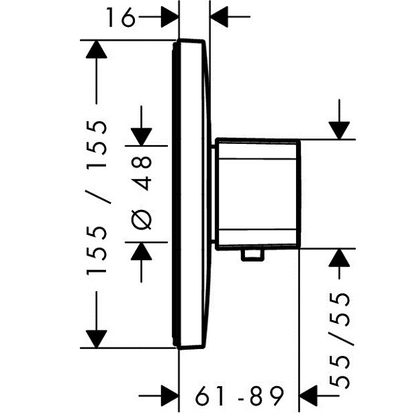 Смеситель для душа, Hansgrohe, Ecostat E, тип регулирования воды-термостатический картридж, тип установки-встраиваемый, комплектация-розетка, рукоятка, гильза, функциональный блок, внутренняя часть-необходимо заказать, цвет-хром, регулируемое ограничение температуры Смеситель для душа, Hansgrohe, Ecostat E, цвет-хром