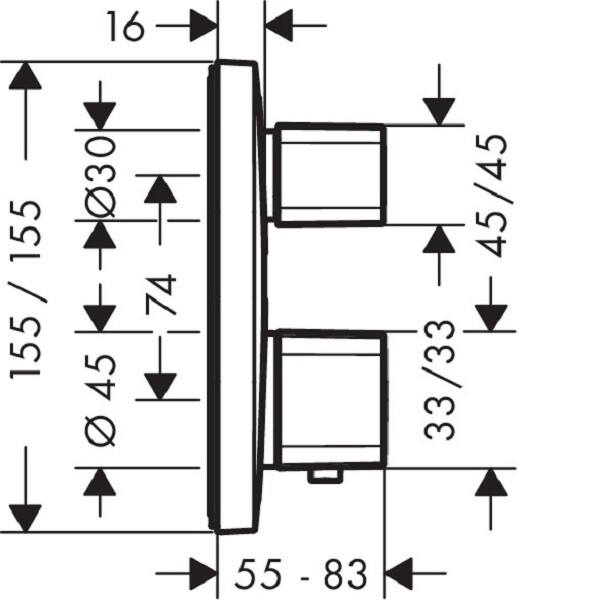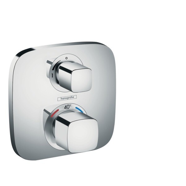 Смеситель для душа, Hansgrohe, Ecostat E, тип открывания воды-вентильный, тип регулирования воды-термостатический картридж, тип установки-настенный, комплектация-ручка, гильза, розетка, функциональный блок, внутренняя часть-необходимо заказать, цвет-хром, регулируемое ограничение температуры Смеситель для душа, Hansgrohe, Ecostat E, цвет-хром