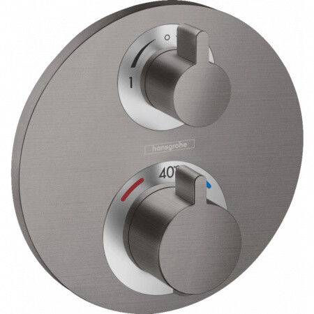 Смеситель для душа, Hansgrohe, Ecostat S, на 2 потребителя, тип открывания воды-вентильный, тип регулирования воды-термостатический картридж, монтаж-настенный встраиваемый, отверстия для монтажа-1, внутренняя часть-необходимо заказать, цвет-хром черный брашированный (Brushed Black Chrome) Смеситель для душа, Hansgrohe, Ecostat S, на 2 потребителя, цвет-хром черный брашированный