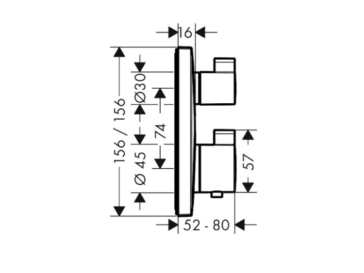 Смеситель для душа, Hansgrohe, Ecostat Square, тип открывания воды-вентильный, тип регулирования воды-термостатический картридж, тип установки-встраиваемый, отверстия для монтажа-2, внутренняя часть-необходимо заказать, цвет-хром, 1 потребитель, с запорным и переключающим вентилем, предохранительный ограничитель при 40°C, регулируемое ограничение температуры Смеситель для душа, Hansgrohe, Ecostat Square, цвет-хром