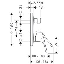 Смеситель для душа, Hansgrohe, Focus, тип открывания воды-рычажный, тип регулирования воды-керамический картридж, монтаж-вертикальный встраиваемый (настенный), отверстия для монтажа-1, внутренняя часть-необходимо заказать, цвет-хром Смеситель для душа, Hansgrohe, Focus, цвет-хром
