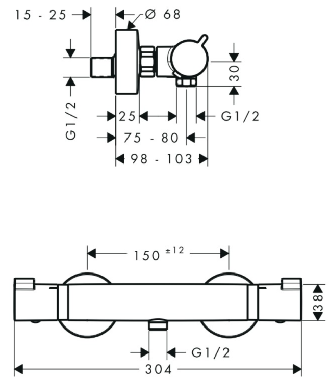 Смеситель для душа, Hansgrohe, Ecostat Comfort, тип открывания воды-вентильный, тип регулирования воды-термостатический картридж, монтаж-вертикальный (настенный), отверстия для монтажа-2, внутренняя часть-есть, цвет-хром Смеситель для душа, Hansgrohe, Ecostat Comfort, цвет-хром