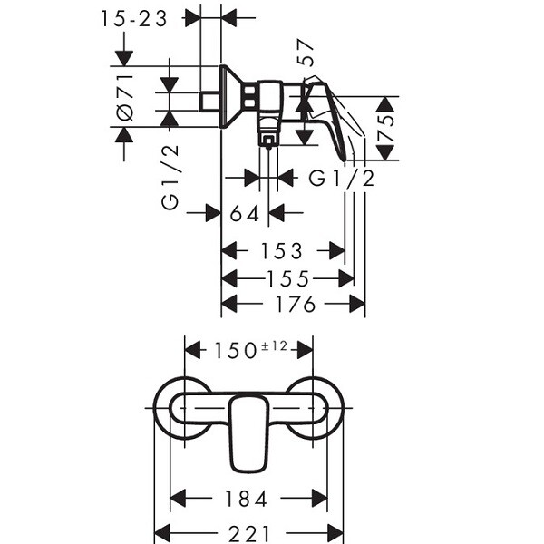 Смеситель для душа, Hansgrohe, Logis, тип открывания воды-однорычажный, тип установки-настенный, отверстия для монтажа-2, цвет-хром, картридж с промежуточным положением для экономичного расхода воды Смеситель для душа, Hansgrohe, Logis, цвет-хром
