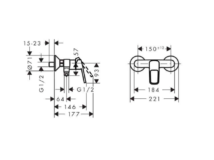 Смеситель для душа, Hansgrohe, Logis Loop, тип открывания воды-однорычажный, тип регулирования воды-керамический картридж, тип установки-настенный, отверстия для монтажа-2, комплектация-ограничитель температуры воды, обратный клапан, цвет-хром Смеситель для душа, Hansgrohe, Logis Loop, цвет-хром