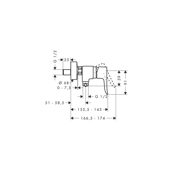 Смеситель для душа, Hansgrohe, Metris, тип открывания воды-однорычажный, тип регулирования воды-керамический картридж, тип установки-настенный, отверстия для монтажа-2, комплектация-шланговое подсоединение, цвет-хром Смеситель для душа, Hansgrohe, Metris, цвет-хром