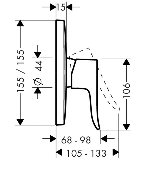 Смеситель для душа, Hansgrohe, Metris, тип открывания воды-рычажный, тип регулирования воды-керамический картридж, монтаж-вертикальный встраиваемый (настенный), отверстия для монтажа-1, внутренняя часть-необходимо заказать, цвет-хром, с шумопоглотителем Смеситель для душа, Hansgrohe, Metris, цвет-хром
