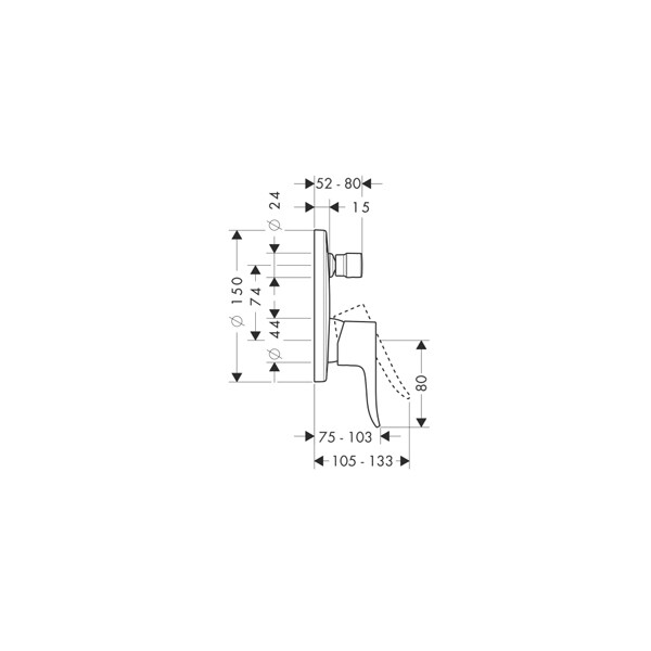 Смеситель для душа, Hansgrohe, Metris, тип открывания воды-однорычажный, тип регулирования воды-керамический картридж, тип установки-встраиваемый, отверстия для монтажа-1, комплектация-переключатель вакуумного типа, внутренняя часть-необходимо заказать, цвет-хром Смеситель для душа, Hansgrohe, Metris, цвет-хром