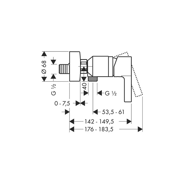 Смесители для душа, Hansgrohe, Metris S, тип открывания воды-однорычажный, тип регулирования воды-керамический картридж, тип установки-настенный, отверстия для монтажа-2, комплектация-шланговое подсоединение, цвет-хром Смеситель для душа, Hansgrohe, Metris S, цвет-хром