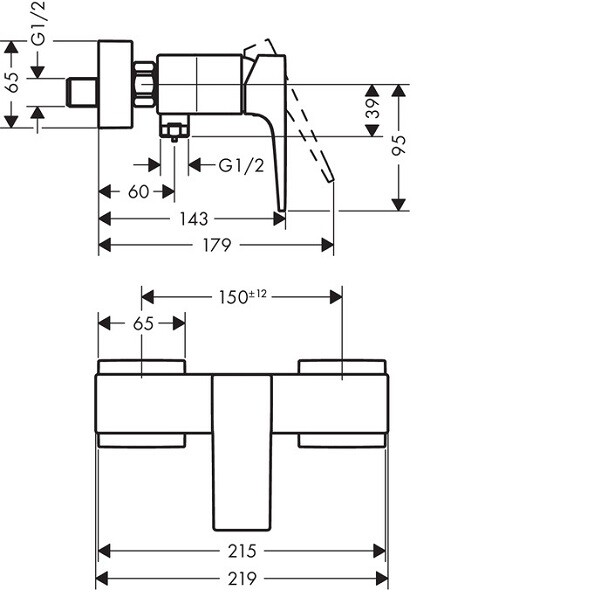 Смеситель для душа, Hansgrohe, Metropol, тип открывания воды-однорычажный, тип регулирования воды-керамический узел смешивания, тип установки-настенный, отверстия для монтажа-2, комплектация-с шумопоглотителем, цвет-хром, регулируемое ограничение температуры Смеситель для душа, Hansgrohe, Metropol, цвет-хром