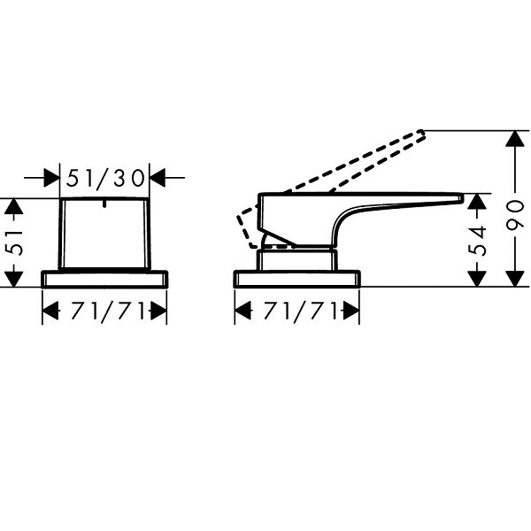 Смеситель для душа, Hansgrohe, Metropol, тип открывания воды-однорычажный, тип регулирования воды-керамический картридж, тип установки-на край ванны, отверстия для монтажа-2, комплектация-рукоятка, розетка, переключатель, внутренняя часть-необходимо заказать, цвет-хром, регулируемое ограничение температуры Смеситель для душа, Hansgrohe, Metropol, цвет-хром
