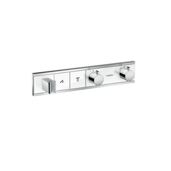 Смеситель для душа, Hansgrohe, RainSelect, тип регулирования воды-термостатический картридж, тип установки-встраиваемый, на 2 потребителя, комплектация-держатель ручного душа, внутренняя часть-необходимо заказать, цвет-белый/хром Смеситель для душа, Hansgrohe, RainSelect, цвет-белый/хром