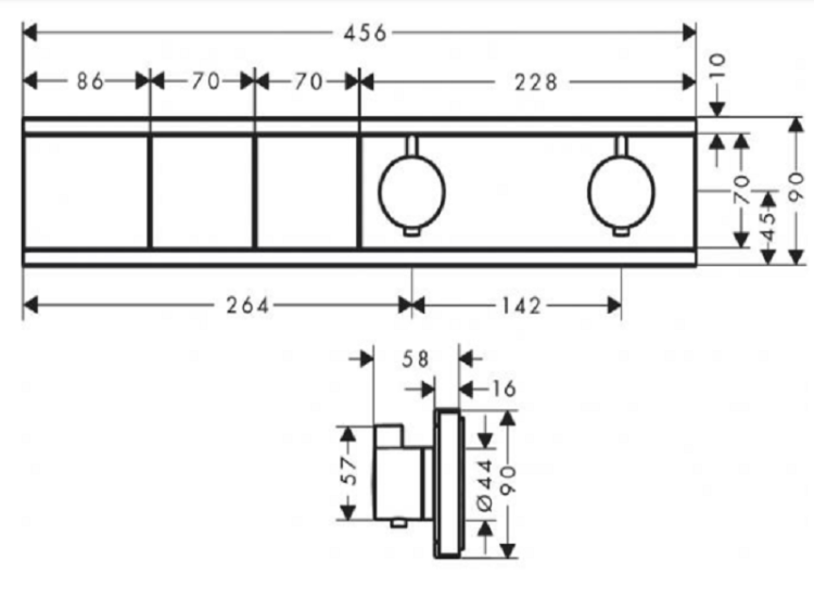 Смеситель для душа, Hansgrohe, RainSelect, тип регулирования воды-термостатический картридж, тип установки-встраиваемый, цвет-хром, для 2 потребителей, предназначенная для регулирования потока воды (комплект), без корпуса смешивания: рукоятки, клавиши, накладная панель, термоэлемент, запорные клапаны, соединительные элементы Смеситель для душа, Hansgrohe, RainSelect, цвет-хром