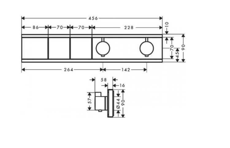Смеситель для душа, Hansgrohe, RainSelect, тип регулирования воды-термостатический картридж, тип установки-встраиваемый, цвет- полированное золото, для 2 потребителей, предназначенная для регулирования потока воды (комплект), без корпуса смешивания: рукоятки, клавиши, накладная панель, термоэлемент, запорные клапаны, соединительные элементы Смеситель для душа, Hansgrohe, RainSelect, цвет-полированное золото
