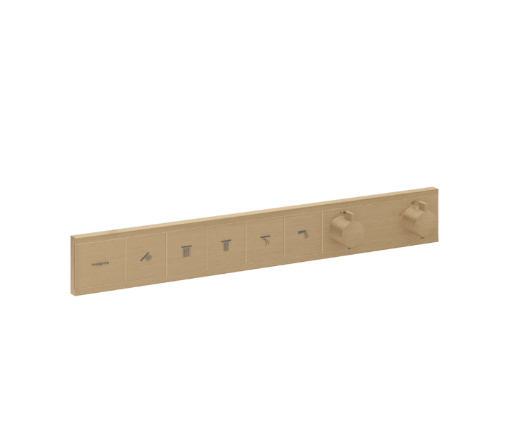 Смеситель для душа, Hansgrohe, RainSelect, на 5 потребителей, тип открывания воды-вентильный, тип регулирования воды-термостатический картридж, монтаж-настенный встраиваемый, отверстия для монтажа-2, внутренняя часть-необходимо заказать, цвет-бронза шлифованная Смеситель для душа, Hansgrohe, RainSelect, на 5 потребителей, цвет-бронза шлифованная
