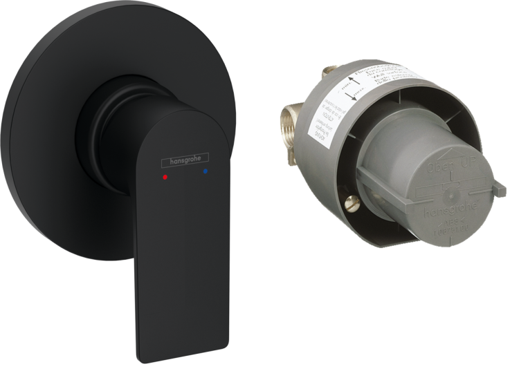 Смеситель для душа, Hansgrohe, Rebris E, тип открывания воды-однорычажный, тип регулирования воды-керамический картридж, монтаж-настенный встраиваемый, отверстия для монтажа-1, внутренняя часть-в комплекте, цвет-черный матовый Смеситель для душа, Hansgrohe, Rebris E, цвет-черный матовый