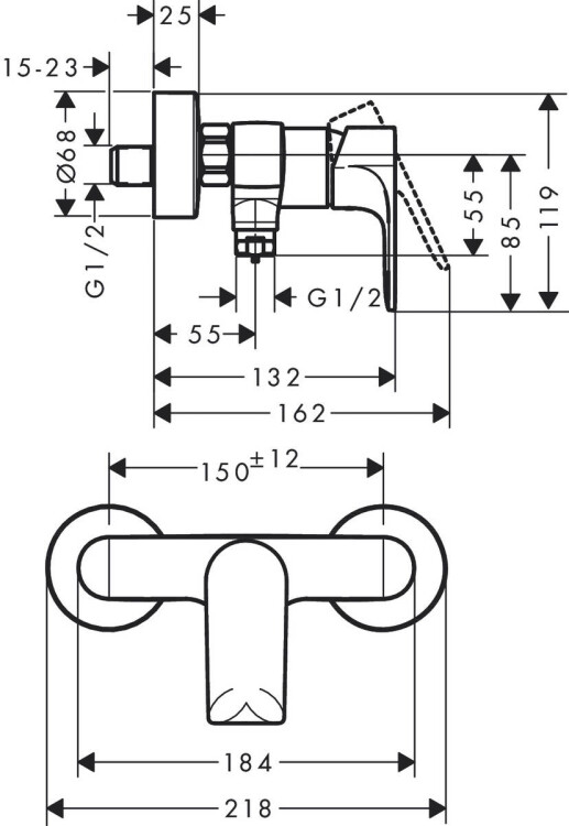 Смеситель для душа, Hansgrohe, Rebris E, тип открывания воды-однорычажный, тип регулирования воды-керамический картридж, монтаж-настенный, отверстия для монтажа-2, цвет-черный матовый Смеситель для душа, Hansgrohe, Rebris E, цвет-черный матовый