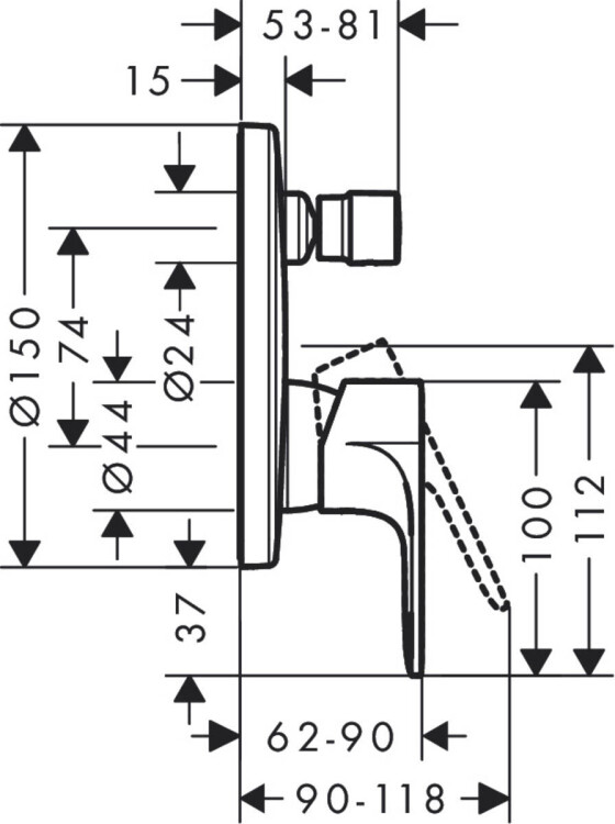 Смеситель для душа, Hansgrohe, Rebris S, тип открывания воды-однорычажный, тип регулирования воды-керамический картридж, монтаж-настенный встраиваемый, отверстия для монтажа-1, внутренняя часть-необходимо заказать, дивертер с переключателем вакуумного типа, цвет-хром Смеситель для душа, Hansgrohe, Rebris S, цвет-хром