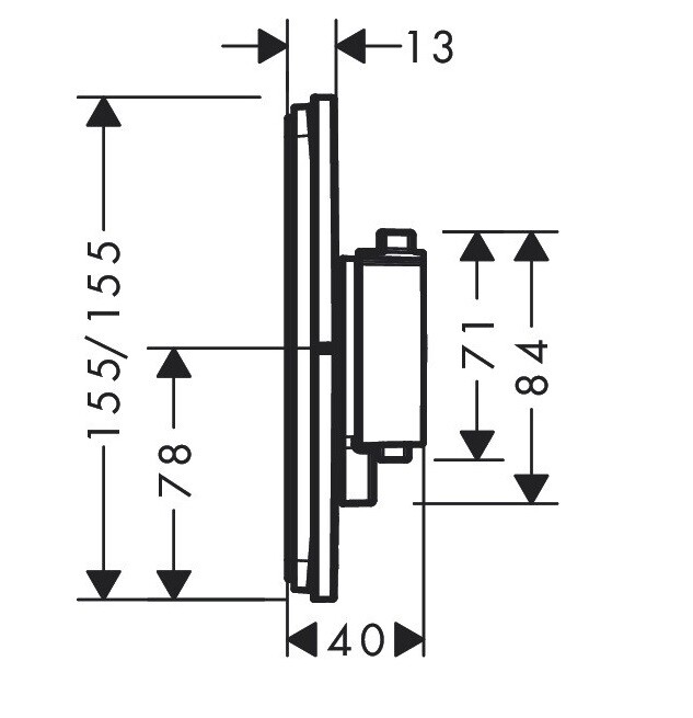 Смеситель для душа, Hansgrohe, ShowerSelect Comfort Q, для 2 потребителей, тип открывания воды-вентильный, тип регулирования воды-термостатический картридж, монтаж-настенный встраиваемый, отверстия для монтажа-1, внутренняя часть-необходимо заказать, цвет-черный матовый Смеситель для душа, Hansgrohe, ShowerSelect Comfort Q, для 2 потребителей, цвет-черный матовый