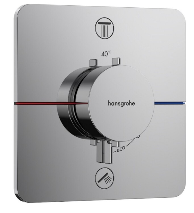 Смеситель для душа, Hansgrohe, ShowerSelect Comfort Q, для 2 потребителей, тип открывания воды-вентильный, тип регулирования воды-термостатический картридж, монтаж-настенный встраиваемый, отверстия для монтажа-1, внутренняя часть-необходимо заказать, цвет-хром Смеситель для душа, Hansgrohe, ShowerSelect Comfort Q, для 2 потребителей, цвет-хром