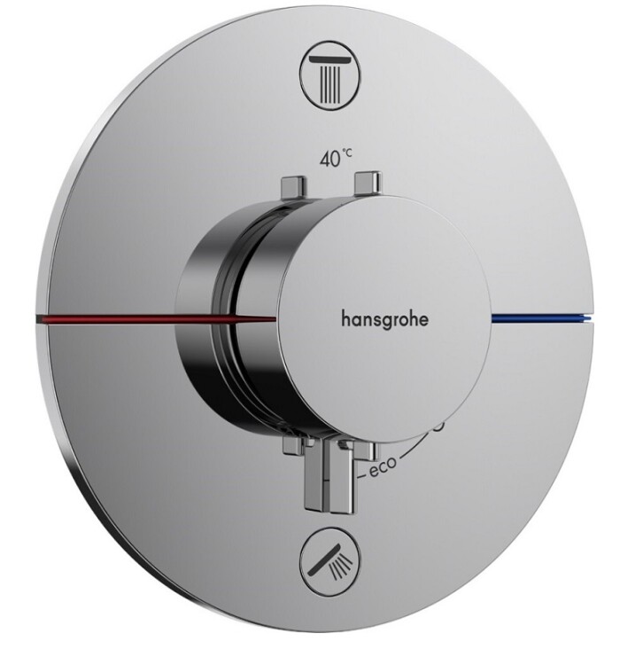 Смеситель для душа, Hansgrohe, ShowerSelect Comfort S, для 2 потребителей, тип открывания воды-вентильный, тип регулирования воды-термостатический картридж, монтаж-настенный встраиваемый, отверстия для монтажа-1, внутренняя часть-необходимо заказать, цвет-хром Смеситель для душа, Hansgrohe, ShowerSelect Comfort S, для 2 потребителей, цвет-хром