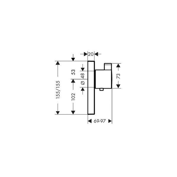 Смеситель для душа, Hansgrohe, ShowerSelect, Highflow, тип открывания воды-вентильный, тип регулирования воды-термостатический картридж, тип установки-настенный, отверстия для монтажа-1, комплектация-ручка, гильза, розетка, функциональный блок, кнопка, внутренняя часть-необходимо заказать, цвет-хром Смеситель для душа, Hansgrohe, ShowerSelect, Highflow цвет-хром