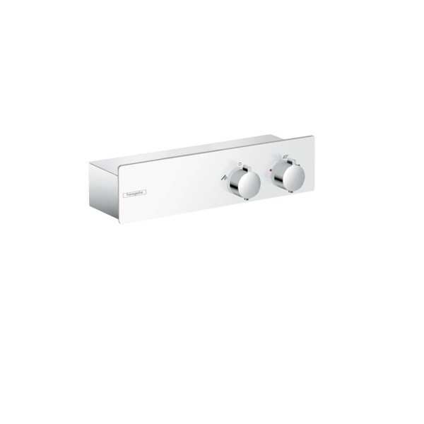 Смеситель для душа, Hansgrohe, ShowerTablet, тип регулирования воды-термостатический картридж, тип установки-настенный, комплектация-с шумопоглотителем, цвет-белый/хром, с изолированной подачей воды Смеситель для душа, Hansgrohe, ShowerTablet, цвет-белый/хром