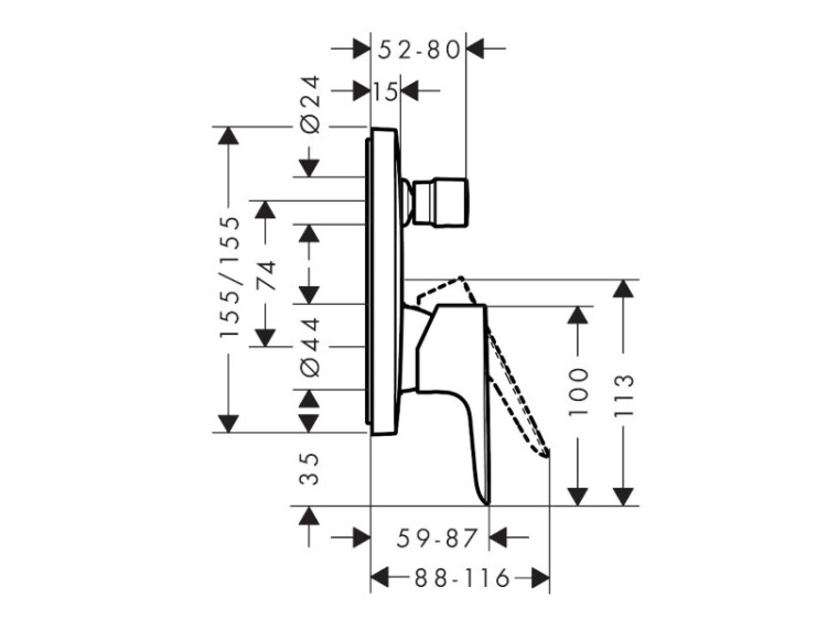 Смеситель для душа, Hansgrohe, Talis E, тип открывания воды-однорычажный, тип регулирования воды-керамический узел смешивания, тип установки-встраиваемый, внутренняя часть-необходимо заказать, цвет-черный матовый, регулируемое ограничение температуры, с переключателем вакуумного типа, с шумопоглотителем Смеситель для душа, Hansgrohe, Talis E, цвет-черный матовый