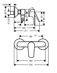 Смеситель для душа, Hansgrohe, Talis E, тип открывания воды-рычажный, тип регулирования воды-керамический картридж, монтаж-вертикальный (настенный), отверстия для монтажа-2, цвет-хром Смеситель для душа, Hansgrohe, Talis E, цвет-хром