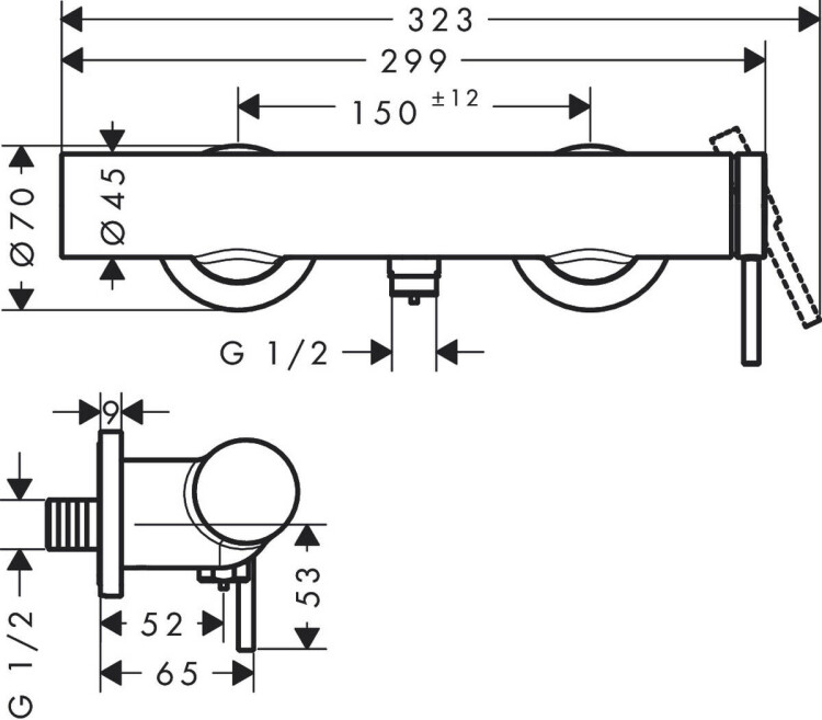 Смеситель для душа, Hansgrohe, Tecturis S, тип открывания воды-однорычажный, тип регулирования воды-керамический картридж, монтаж-настенный, отверстия для монтажа-2, цвет-хром Смеситель для душа, Hansgrohe, Tecturis S, цвет-хром